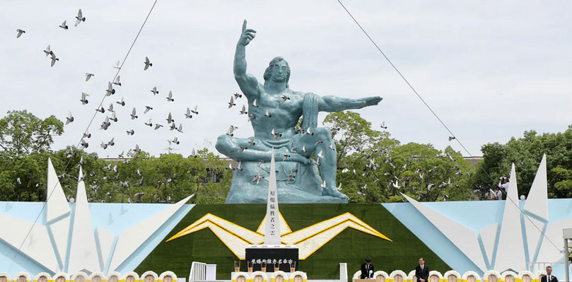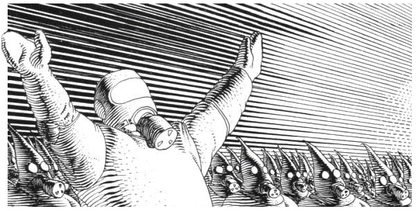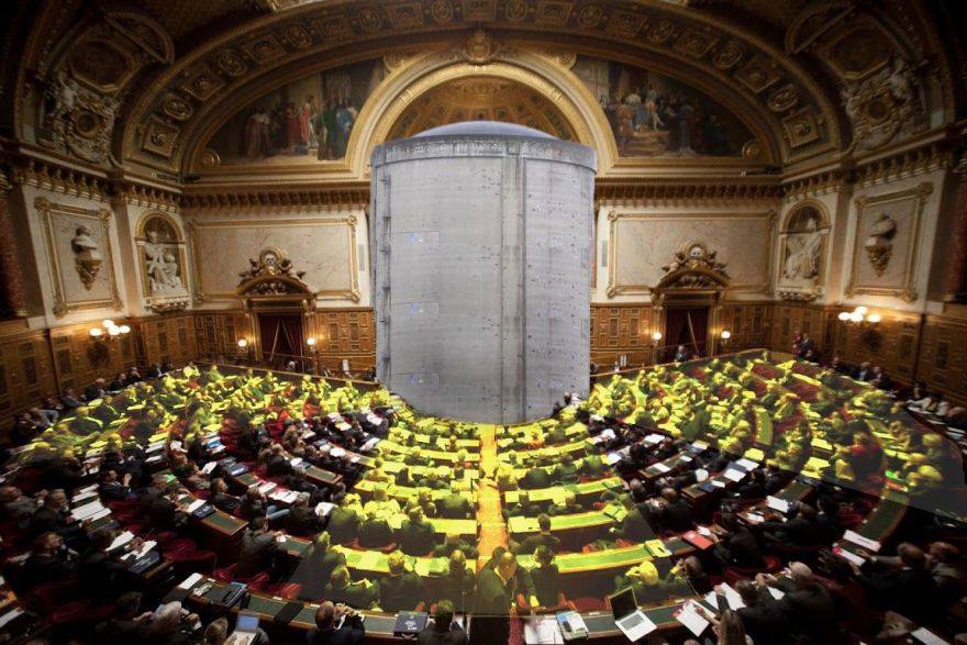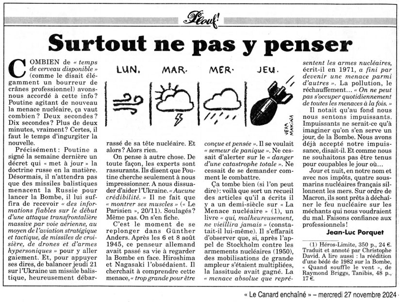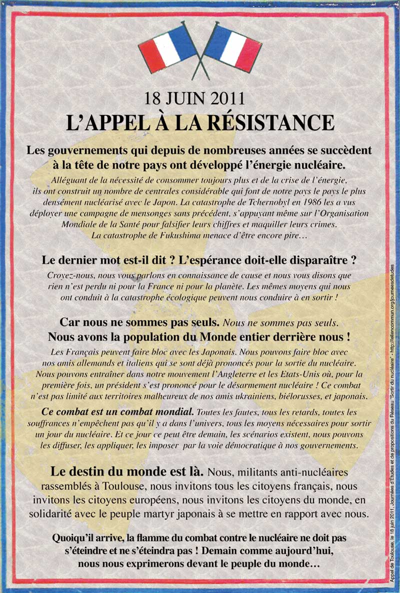 « En face du péril atomique qui ne ressemble à aucun autre, qui est incommensurable à tout autre, de ce péril qui, par son amplitude, impose à l’espèce tout entière de nouvelles façons de penser et d’agir, en face de ce péril dont il est honorable autant que raisonnable d’avoir peur, il ne devrait plus y avoir ni pays, ni continent, ni monde libre ou pas libre, mais rien que des hommes, citoyens de la planète, tous mêlés, confondus, fraternisés par une égale menace. »