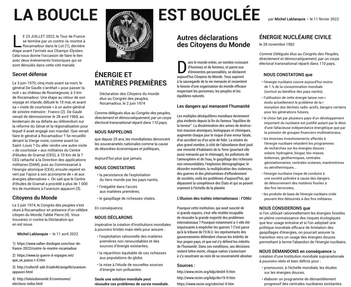 La guerre de Mr Poutine contre l’Ukraine nous rappelle que les centrales nucléaires et les stockages de déchets radioactifs sont des cibles militaires potentielles et des bombes radioactives en puissance. Même en temps de paix, le nucléaire est beaucoup trop dangereux, beaucoup trop coûteux, beaucoup trop contaminant et polluant, pour qu’on continue à investir dans des technologies de guerre imaginées au siècle dernier. C’est d’ailleurs la raison pour laquelle, après 70 ans de soutiens massifs des États les plus puissants de la planète, l’énergie nucléaire ne fournit qu’à peine 2 % de toutes les consommations finales d’énergie à l’échelle mondiale. Quant aux armes atomiques, objet du Traité d’Interdiction des Armes Atomiques (TIAN), elles ont prouvé leur inutilité à empêcher les « guerres par procuration » entre États qui en sont dotés. Ce ne sont que des instruments de terreur envers les populations civiles.