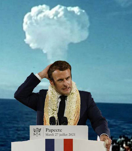 Le pied à peine posé sur l'archipel, le 24 juillet 2021, Emmanuel Macron en visite en Polynésie appellait chacun à se faire vacciner. Dans son discours du 27 à Papeete, il s'est toute fois exprimé sur les conséquences des « essais » atomiques en Polynésie, sujet sur lequel il était attendu, « la part d'ombre » de la France (voir ici la vidéo de son intervention - à partir de 43:20).