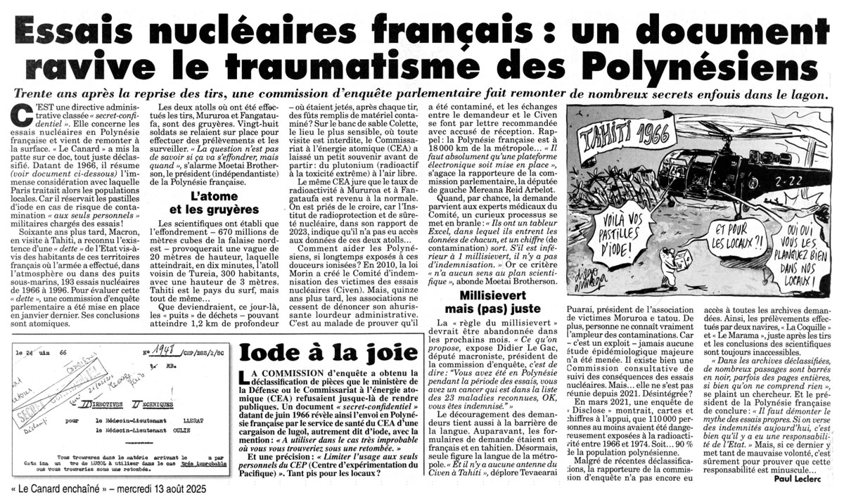 par Paul Leclerc, Le Canard enchaîné, le 13 août 2025