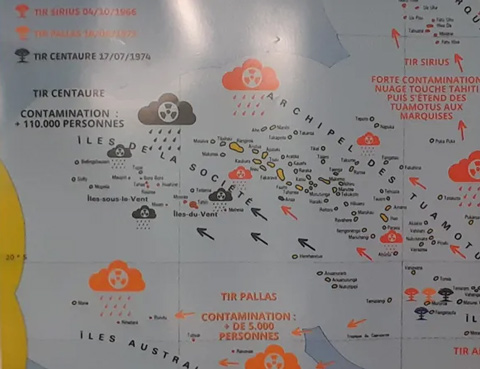 Lors du « Tir Centaure », effectué le 17 juillet 1974 en Polynésie depuis l’atoll de Moruroa, le champignon atomique ne s’élève pas assez haut et se dirige vers Tahiti en contaminant les sols et les habitants.