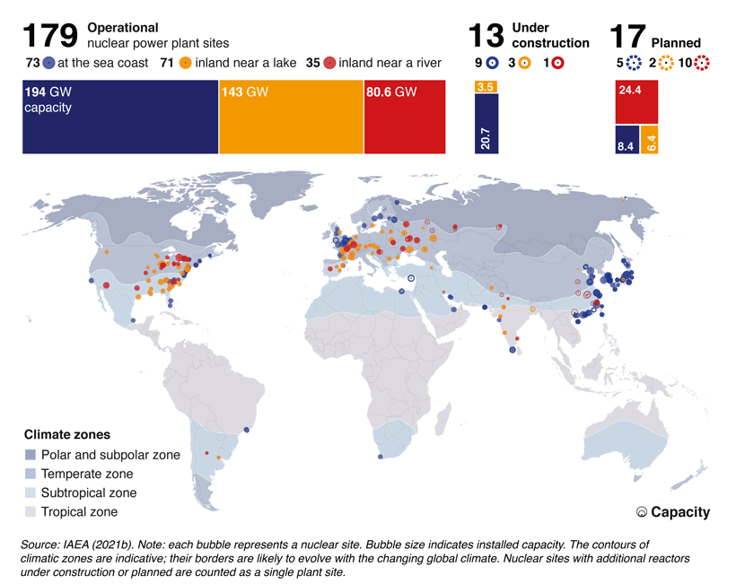 Les données du WNISR diffèrent parfois de ceux de l’Agence internationale de l’énergie atomique, alimentée par les États. Ces derniers tardent souvent à mettre à jour le statut des réacteurs en arrêt de longue durée, comme ce fut le cas pour la vingtaine de réacteurs arrêtés au Japon après le tsunami, ou aujourd’hui avec les six de Zaporijjia, en Ukraine. Principale conclusion, alors que cela fait 70 ans cette année qu’est entré en service le premier réacteur, en 1954, en Russie, la part du nucléaire dans la production électrique mondiale poursuit son déclin, entamé il y a 28 ans.