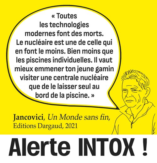 Alors que son pessimisme sur les technologies vertes est contredit par les faits, Jean-Marc Jancovici présente en novembre dernier lors d’une audition devant des députés comme « assez malin » le scénario technologique jusqu’au-boutiste de l’association Voix du nucléaire. Plaider en faveur du nucléaire n’autorise pas à en minimiser les risques et badiner sur le nombre de victimes au motif qu’elles sont beaucoup moins nombreuses que les accidentés de la route et les cancers de la cigarette.